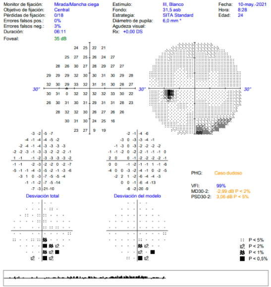 Avalia o campo visual do paciente, identificando áreas de visão perdida ou reduzida, essencial no diagnóstico e controle do glaucoma e distúrbios neurológicos.